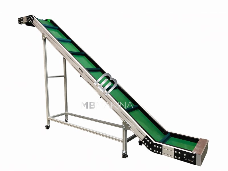 MB Makina tarafından üretilen Z tipi elevatör konveyör sistemleri, dikey ve yatay geçiş noktalarında ürünlerin bant üzerinde kontrolünü sağlayan MB60 Serisi yan bariyer tasarımı ile güvenli ve kesintisiz taşıma sunar. Bu yapı, ürünlerin yükselirken veya yön değiştirirken bant dışına çıkmasını engeller.